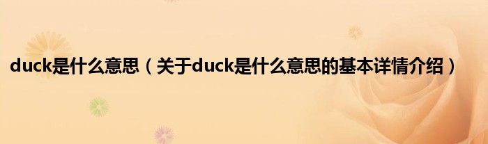 本文关于duck是什么意思的基本详情介绍就讲解完毕,希望对大家有所帮助。