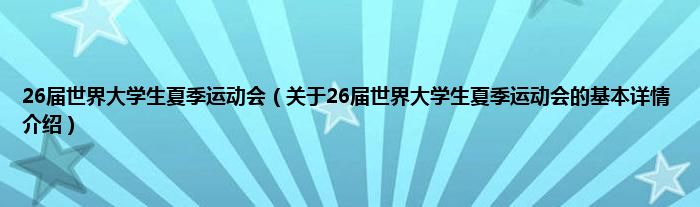 本文关于26届世界大学生夏季运动会的基本详情介绍就讲解完毕,希望对大家有所帮助。