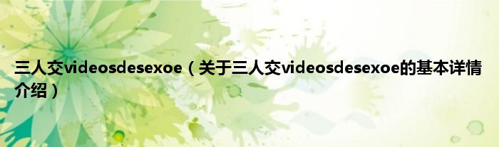 本文关于三人交videosdesexoe的基本详情介绍就讲解完毕,希望对大家有所帮助。