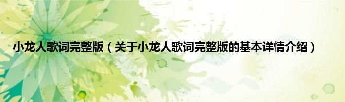 本文关于小龙人歌词完整版的基本详情介绍就讲解完毕,希望对大家有所帮助。
