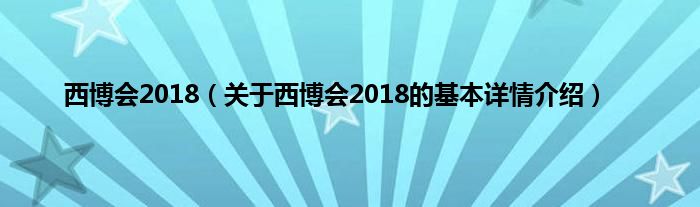 本文关于西博会2018的基本详情介绍就讲解完毕,希望对大家有所帮助。