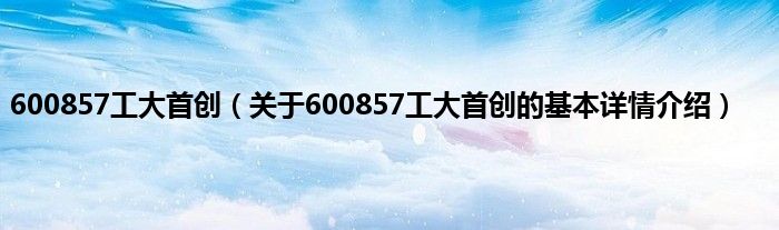 本文关于600857工大首创的基本详情介绍就讲解完毕,希望对大家有所帮助。