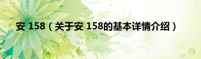 安 158(关于安 158的基本详情介绍)