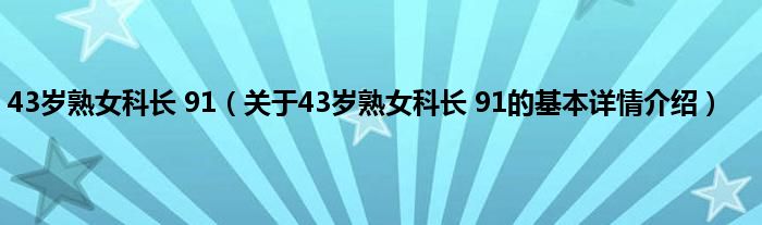 43岁熟女科长 91(关于43岁熟女科长 91的基本详情介绍)