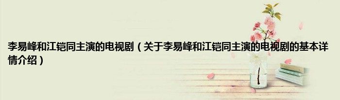本文关于李易峰和江铠同主演的电视剧的基本详情介绍就讲解完毕,希望对大家有所帮助。