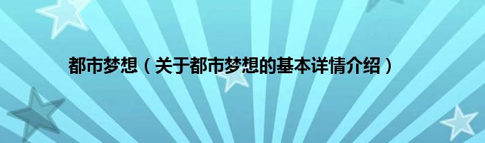本文关于都市梦想的基本详情介绍就讲解完毕,希望对大家有所帮助。