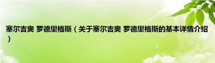 本文关于塞尔吉奥 罗德里格斯的基本详情介绍就讲解完毕,希望对大家有所帮助。