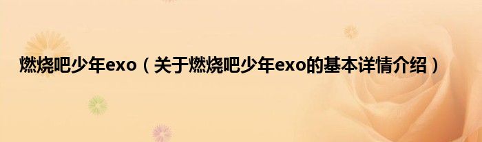 本文关于燃烧吧少年exo的基本详情介绍就讲解完毕,希望对大家有所帮助。