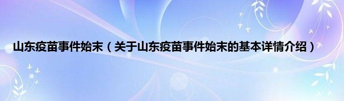 本文关于山东疫苗事件始末的基本详情介绍就讲解完毕,希望对大家有所帮助。