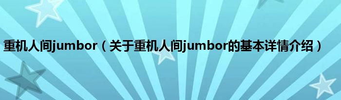 本文关于重机人间jumbor的基本详情介绍就讲解完毕,希望对大家有所帮助。