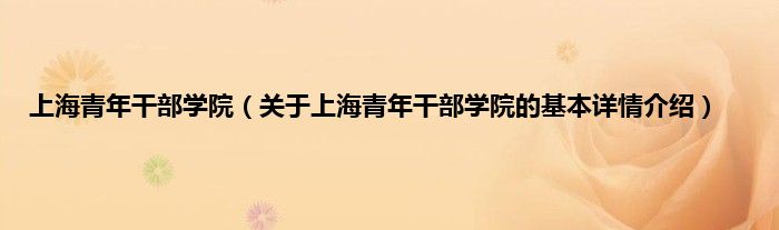 本文关于上海青年干部学院的基本详情介绍就讲解完毕,希望对大家有所帮助。