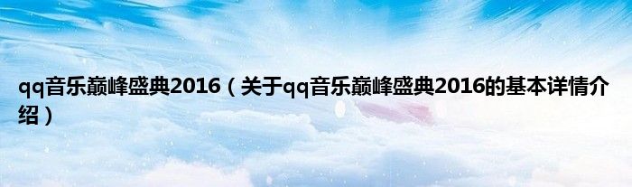 本文关于qq音乐巅峰盛典2016的基本详情介绍就讲解完毕,希望对大家有所帮助。