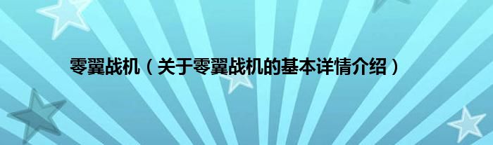 本文关于零翼战机的基本详情介绍就讲解完毕,希望对大家有所帮助。