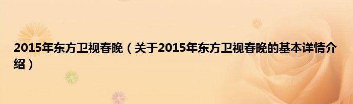 本文关于2015年东方卫视春晚的基本详情介绍就讲解完毕,希望对大家有所帮助。
