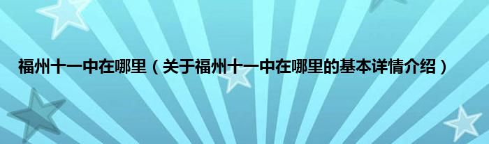 本文关于福州十一中在哪里的基本详情介绍就讲解完毕,希望对大家有所帮助。