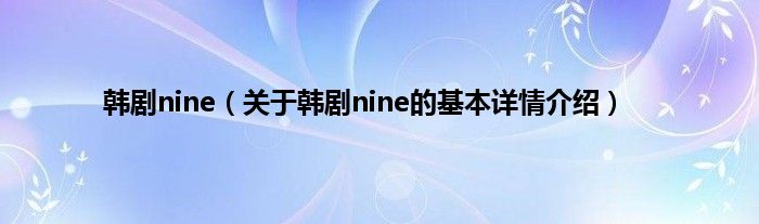本文关于韩剧nine的基本详情介绍就讲解完毕,希望对大家有所帮助。