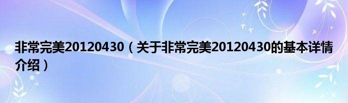本文关于非常完美20120430的基本详情介绍就讲解完毕,希望对大家有所帮助。