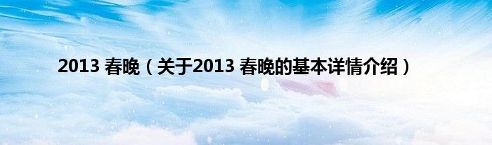 本文关于2013 春晚的基本详情介绍就讲解完毕,希望对大家有所帮助。