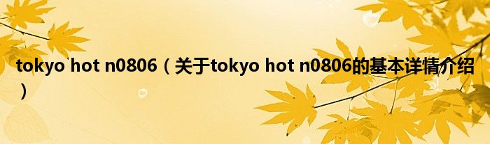 本文关于tokyo hot n0806的基本详情介绍就讲解完毕,希望对大家有所帮助。