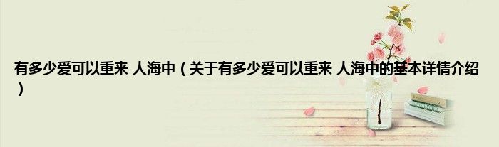 本文关于有多少爱可以重来 人海中的基本详情介绍就讲解完毕,希望对大家有所帮助。