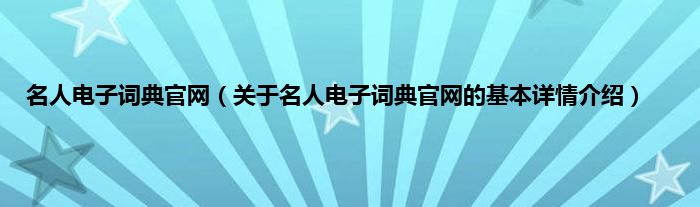名人电子词典官网(关于名人电子词典官网的基本详情介绍)