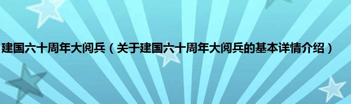 本文关于建国六十周年大阅兵的基本详情介绍就讲解完毕,希望对大家有所帮助。