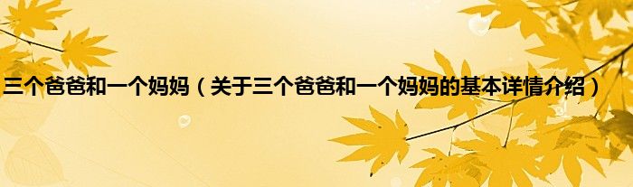 本文关于三个爸爸和一个妈妈的基本详情介绍就讲解完毕,希望对大家有所帮助。