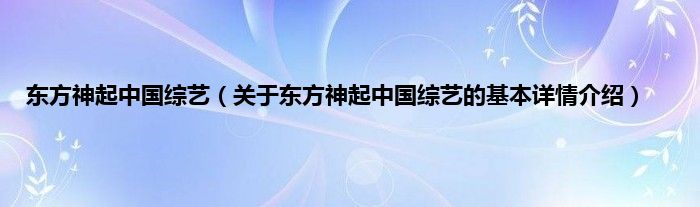 本文关于东方神起中国综艺的基本详情介绍就讲解完毕,希望对大家有所帮助。
