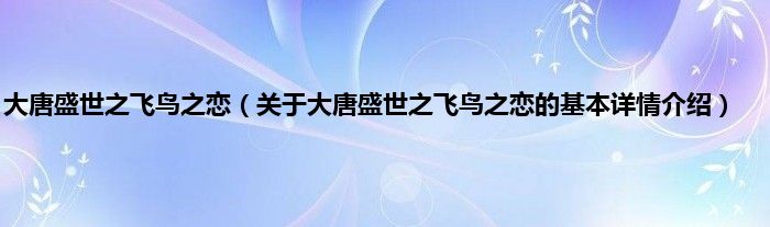 本文关于大唐盛世之飞鸟之恋的基本详情介绍就讲解完毕,希望对大家有所帮助。