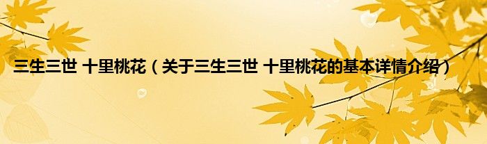 本文关于三生三世 十里桃花的基本详情介绍就讲解完毕,希望对大家有所帮助。