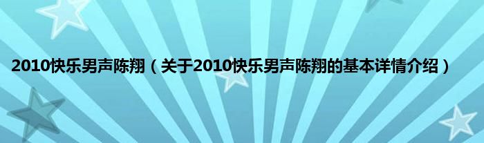 本文关于2010快乐男声陈翔的基本详情介绍就讲解完毕,希望对大家有所帮助。