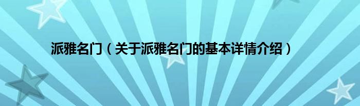 大家好我是小蝌蚪,派雅名门,关于派雅名门的基本详情介绍很多人还不知道,那么现在让我们一起来看看吧!