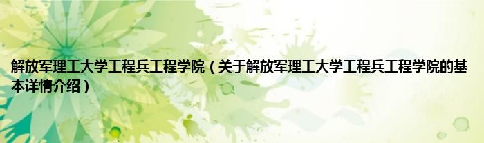 本文关于解放军理工大学工程兵工程学院的基本详情介绍就讲解完毕,希望对大家有所帮助。
