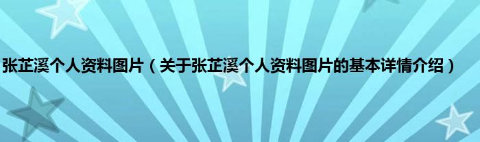 本文关于张芷溪个人资料图片的基本详情介绍就讲解完毕,希望对大家有所帮助。