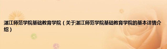 本文关于湛江师范学院基础教育学院的基本详情介绍就讲解完毕,希望对大家有所帮助。