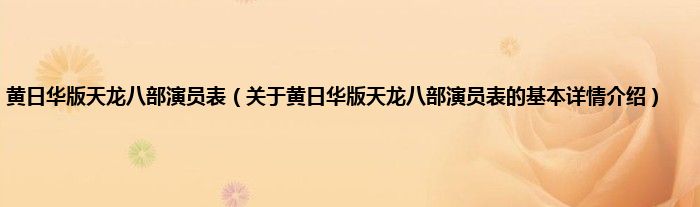 本文关于黄日华版天龙八部演员表的基本详情介绍就讲解完毕,希望对大家有所帮助。