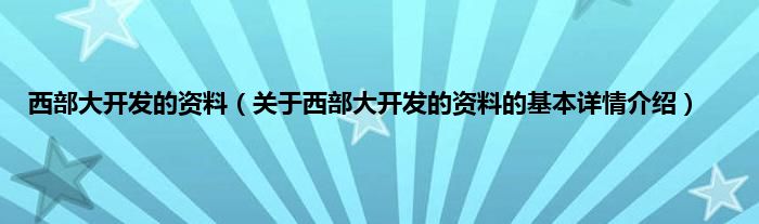 西部大开发的资料(关于西部大开发的资料的基本详情介绍)