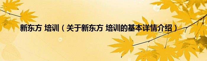 本文关于新东方 培训的基本详情介绍就讲解完毕,希望对大家有所帮助。