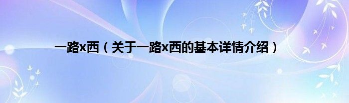 本文关于一路x西的基本详情介绍就讲解完毕,希望对大家有所帮助。