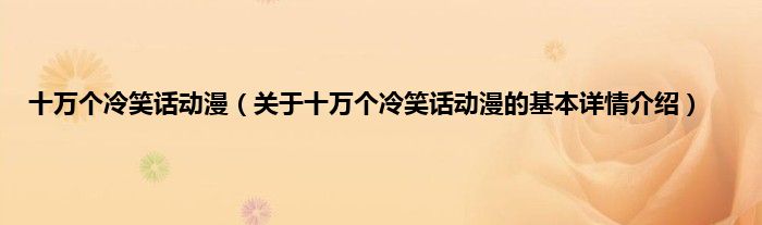 本文关于十万个冷笑话动漫的基本详情介绍就讲解完毕,希望对大家有所帮助。