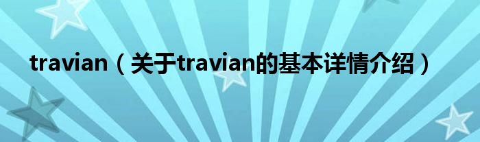 本文关于travian的基本详情介绍就讲解完毕,希望对大家有所帮助。