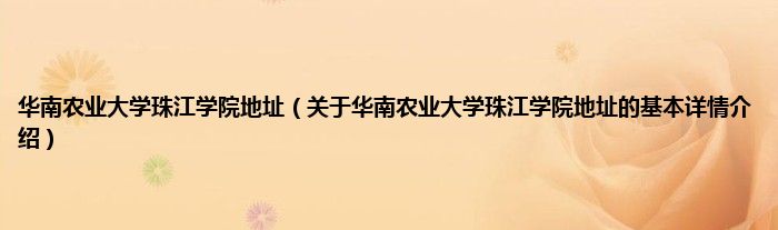 本文关于华南农业大学珠江学院地址的基本详情介绍就讲解完毕,希望对大家有所帮助。