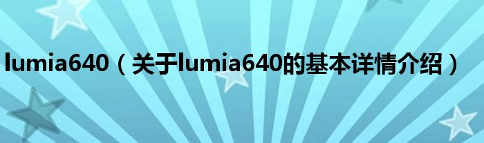 本文关于lumia640的基本详情介绍就讲解完毕,希望对大家有所帮助。