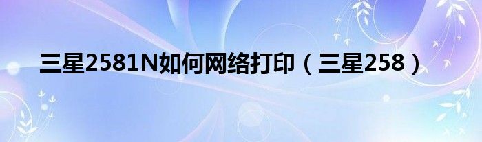 以上就是【三星2581N如何网络打印,三星258】相关内容。