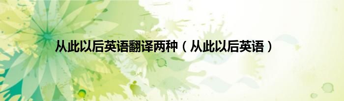 大家好,小问来为大家解答以上问题。从此以后英语翻译两种,从此以后英语这个很多人还不知道,现在让我们一起来看看吧!