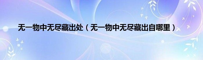 大家好,小问来为大家解答以上问题。无一物中无尽藏出处,无一物中无尽藏出自哪里这个很多人还不知道,现在让我们一起来看看吧!