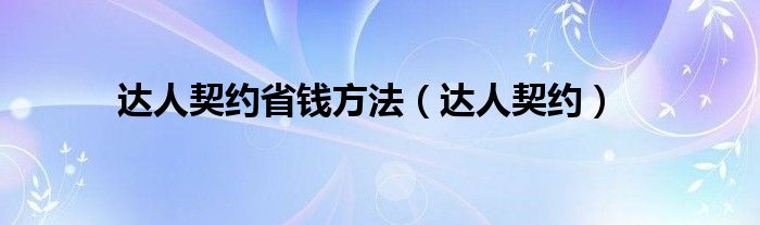以上就是【达人契约省钱方法,达人契约】相关内容。
