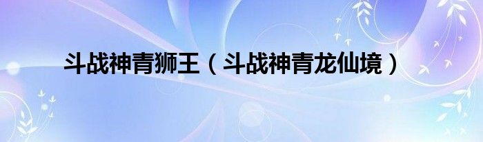 以上就是【斗战神青狮王,斗战神青龙仙境】相关内容。