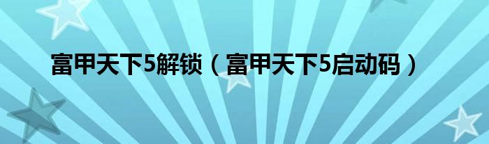 大家好,小问来为大家解答以上问题。富甲天下5解锁,富甲天下5启动码这个很多人还不知道,现在让我们一起来看看吧!