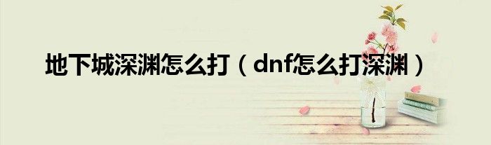 以上就是【地下城深渊怎么打,dnf怎么打深渊】相关内容。